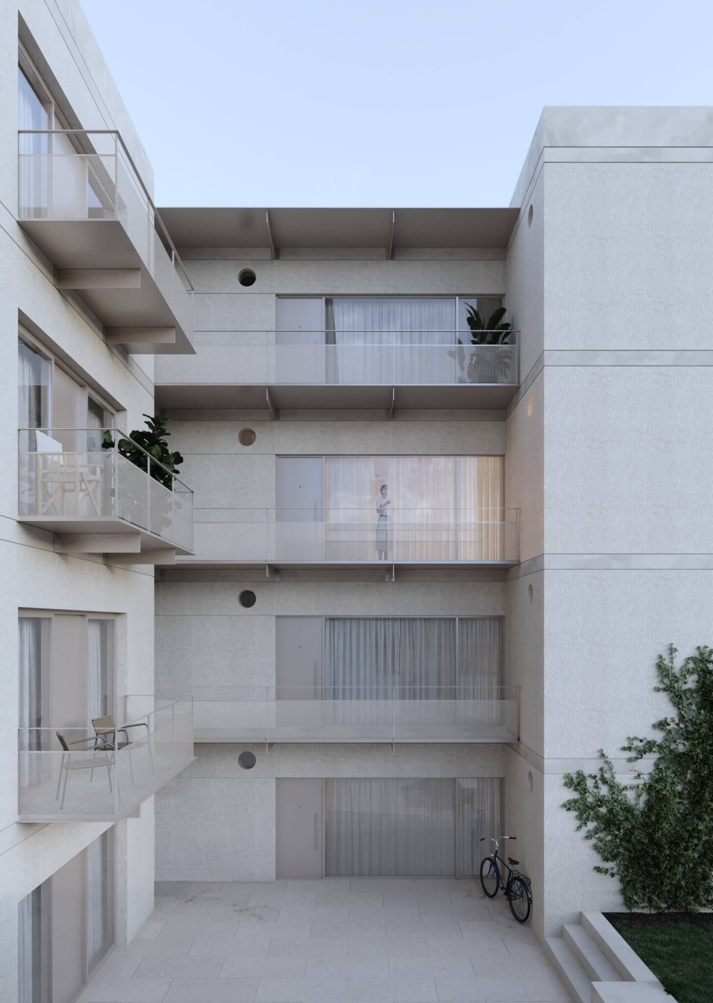 A dialogue with the past: the left half preserves the existing façade, carrying its quiet memory of the street, while the right half introduces a new addition — clean, measured, and aligned. Together, they form a balanced façade, where heritage and contemporary architecture coexist in a single urban gesture.