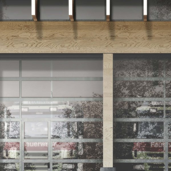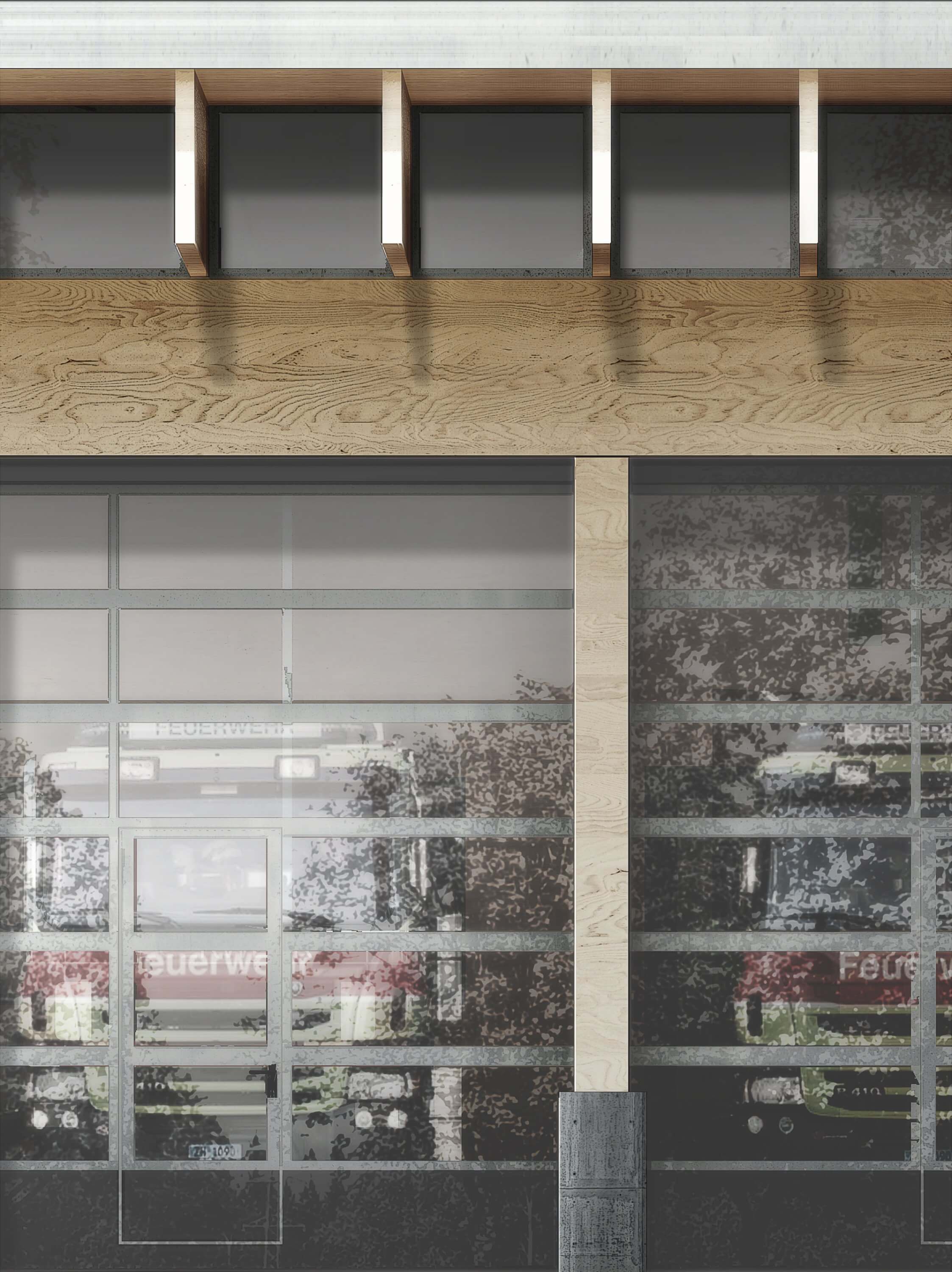 The fire brigade and rescue service are oriented directly to Illnauerstrasse, with their forecourt and exits clearly organized along this important access point, while to the rear of the vehicle hall a layer of infrastructure rooms ensures operational efficiency and continuity. These are supplemented by shared areas and office spaces distributed across the ground and first floors, creating a balance between technical necessity and the needs of the workforce. At the center of the complex, an introverted atrium, protected from external views, provides a private outdoor space that serves both as a place of rest and as a setting for informal exchange among employees.