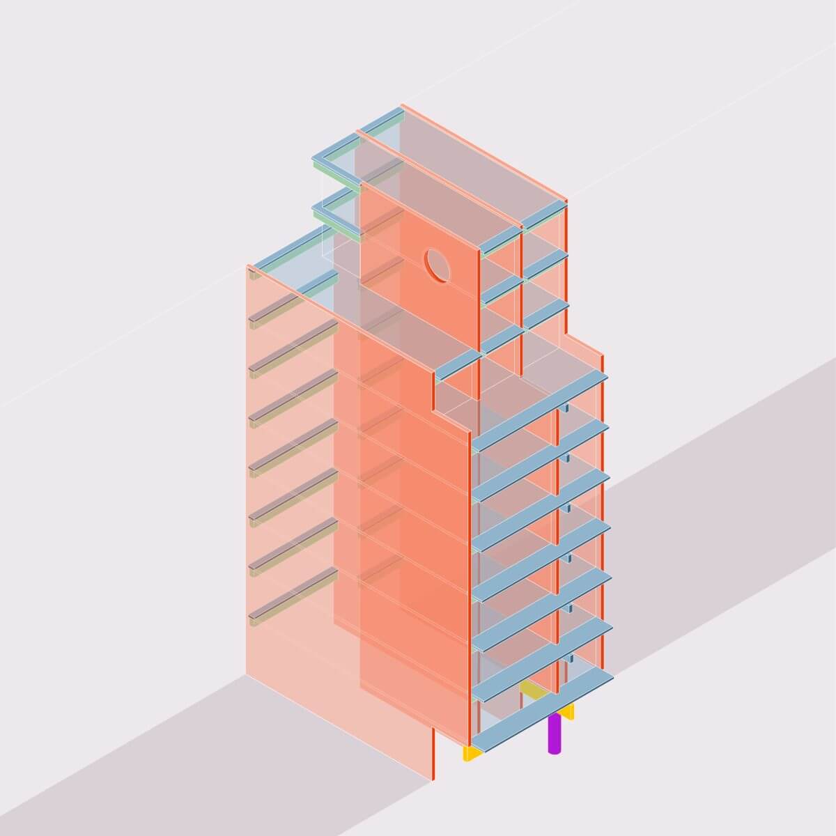 The project becomes a built interpretation of the relationship between two brothers: two parallel figures, connected through one shared element.